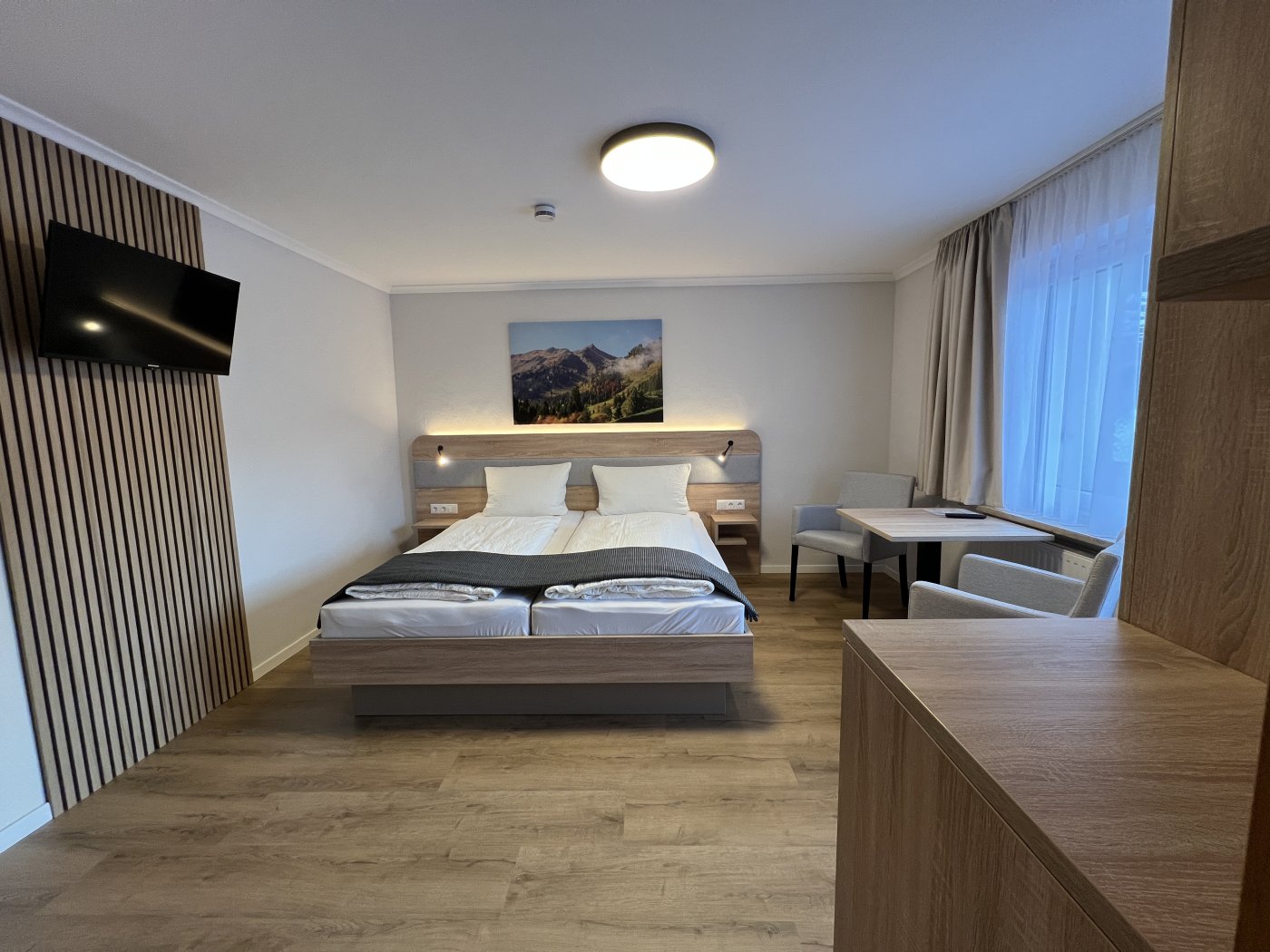 Unsere Doppelzimmer sind alle mit Dusche/WC, Flachbild-TV, WLAN und Balkon ausgestattet. Handtücher, Bettwäsche, Fön und Handseife sind vorhanden.